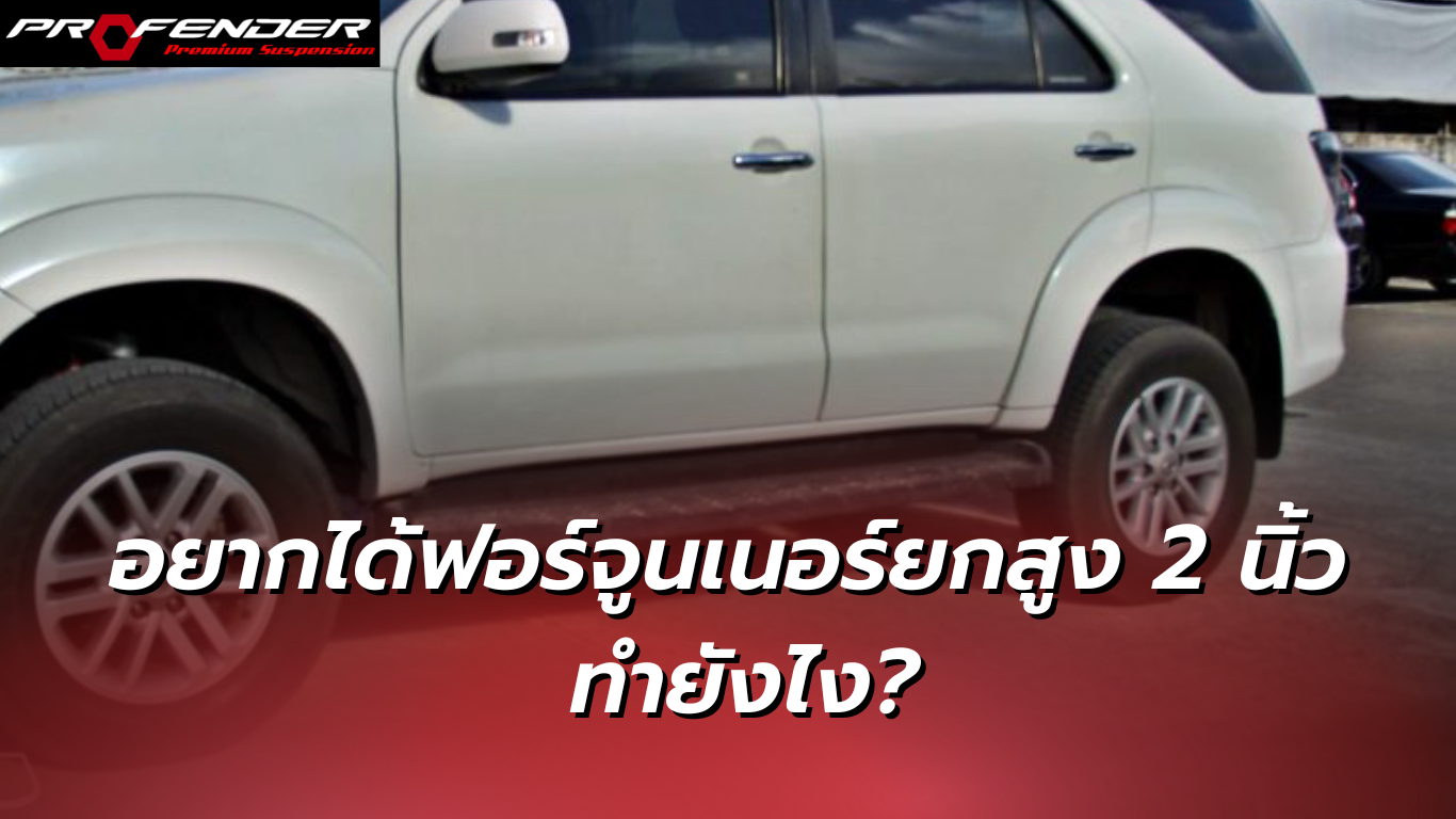 การยกสูงรถโตโยต้า ฟอร์จูนเนอร์ให้สูงขึ้น 2 นิ้วมีให้เลือกหลายวิธีด้วยกัน โดย Profender ขอเสนอวิธียกสูง 2 นิ้วที่มีความง่ายและปลอดภัยด้วยชุดยกสำเร็จรูป
